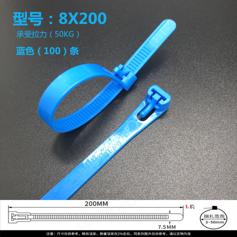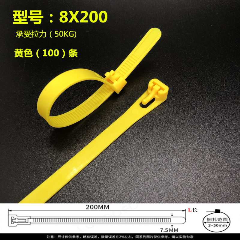 New Light Color Live Buckle Type repeated use of nylon strap 8x200MM plastic with adjustable buckle-Taobao