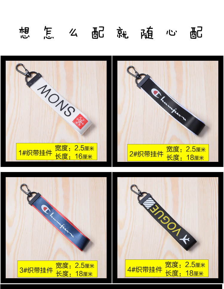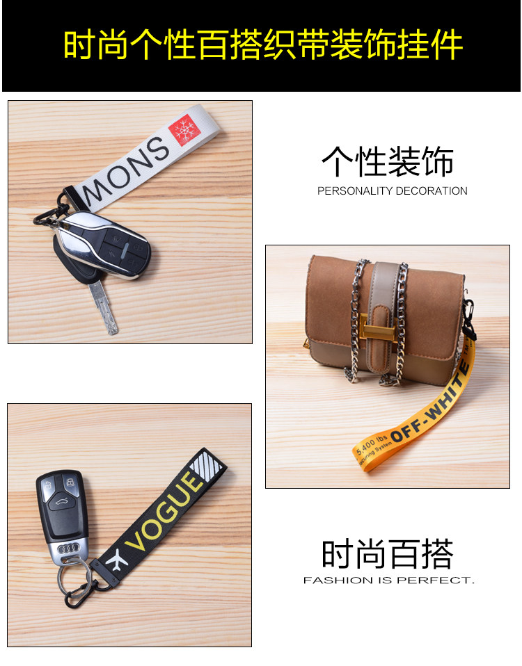 New personality fashion joker ribbon pendant button print letter ribbon zipper head key chain satchel decoration