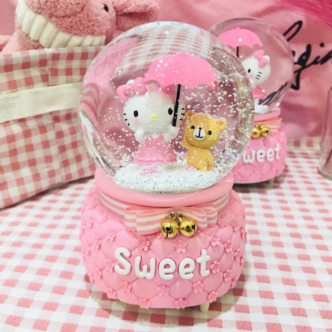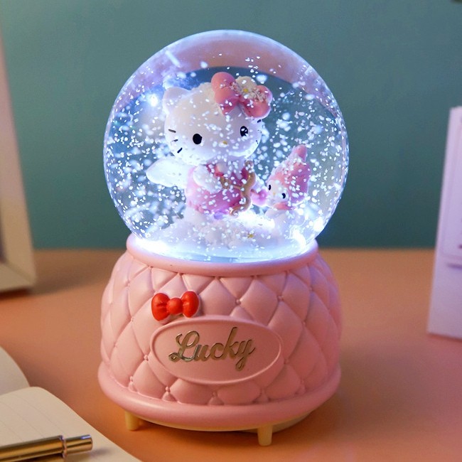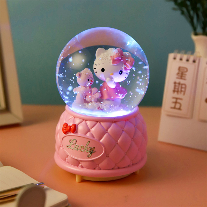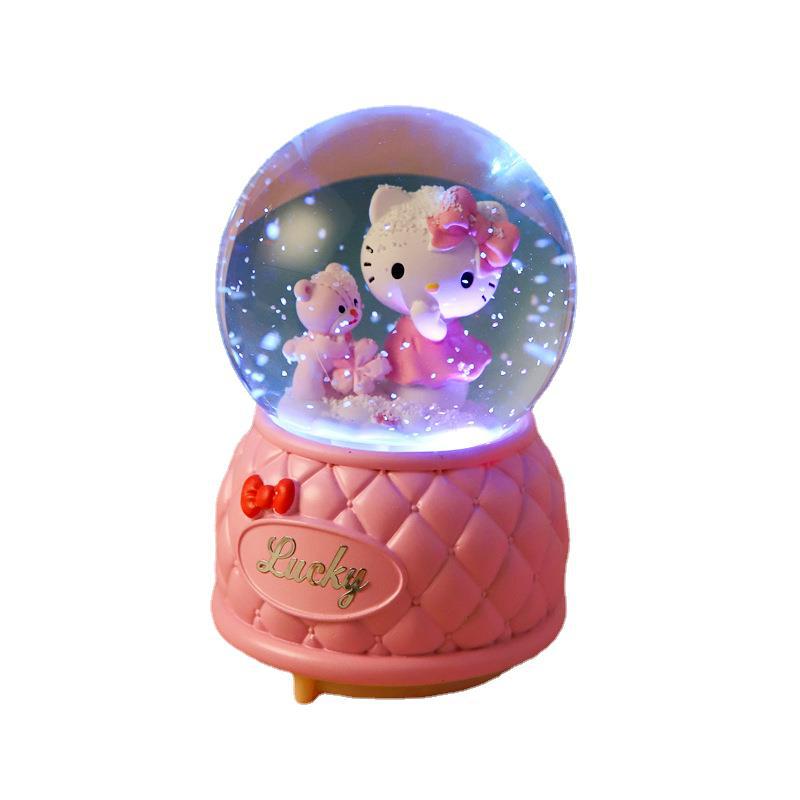 Pink Children Birthday Gift KT Cat Send Girl Friend Bestie Spinning Glowing Crystal Ball Music Box Octaphonebox 8 Soundbox