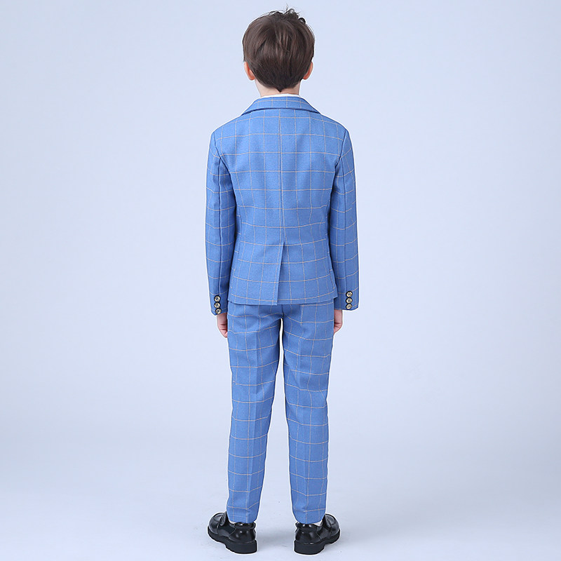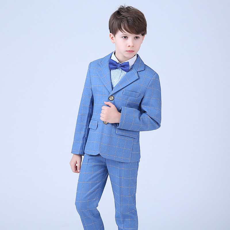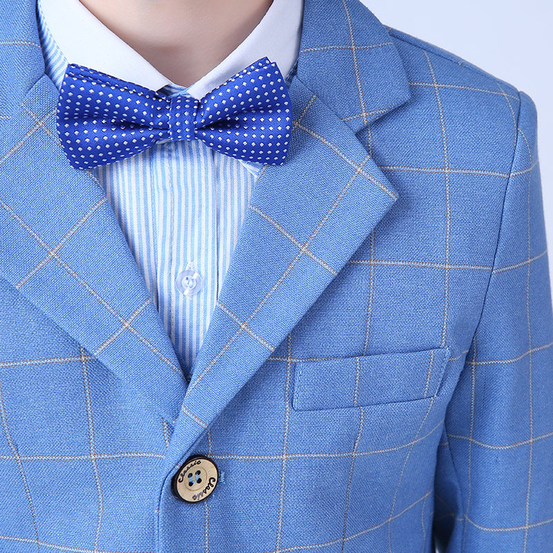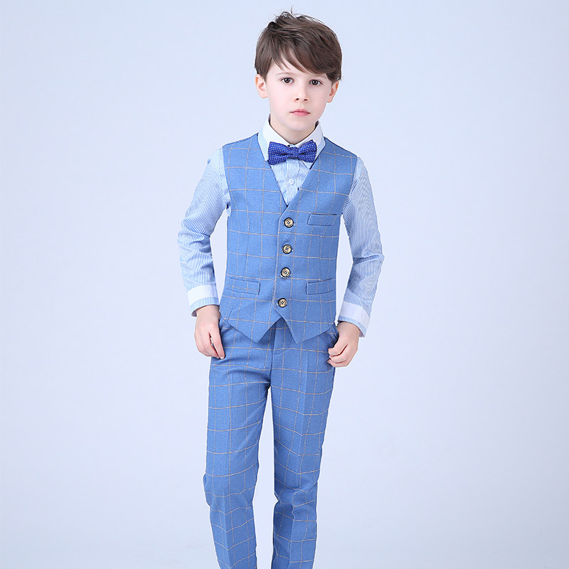 Three-piece sky blue shirt (pants, shirt, bow tie) Five-piece sky blue suit (pants, suit, shirt, vest, bow tie) Four-piece sky blue vest (pants, shirt, vest, collar