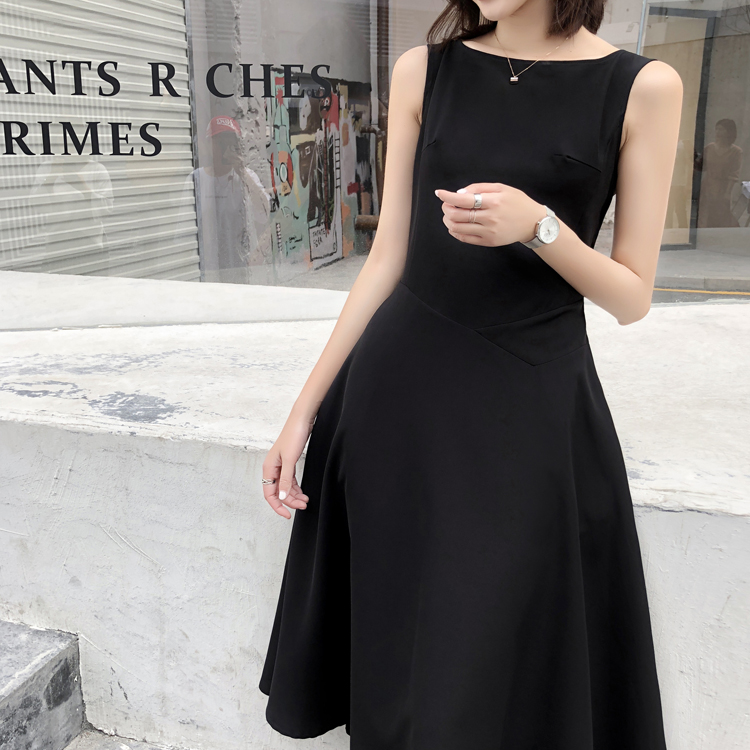 Herbenwind black sleeveless collection waist retro little black dress with large swing over knee long version of high waist conspicuy slim fit women summer