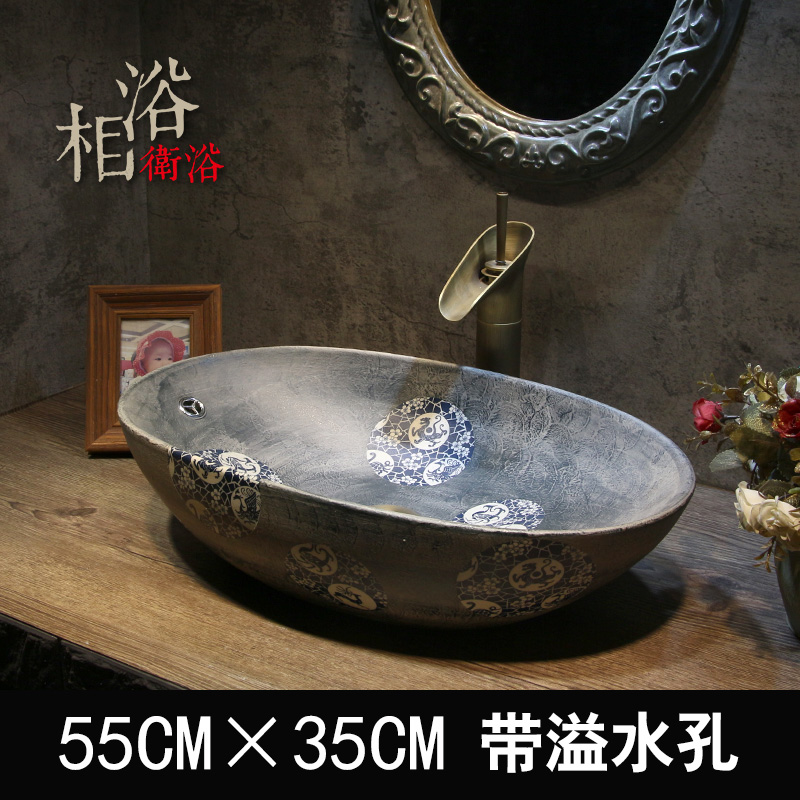 Jingdezhen blue and white porcelain table basin Ceramic antique vintage wash basin Household large oval basin with overflow hole