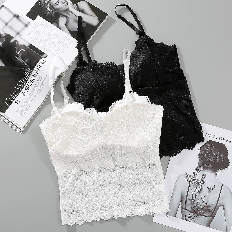 Camisole women with chest pads with sexy lace black anti-glare bottoming short tube top underwear wrap chest