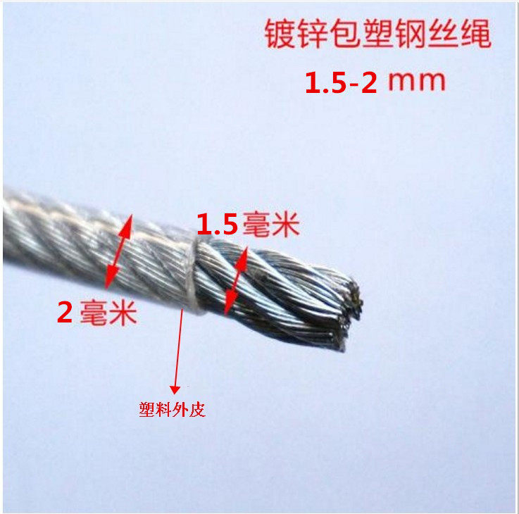 Galvanized coated plastic wire rope 1 5-2mm Greenhouse Rope Grape Frame Rope Thyme Fire Dragon Fruit Wrap Gum plastic outer diameter 2mm