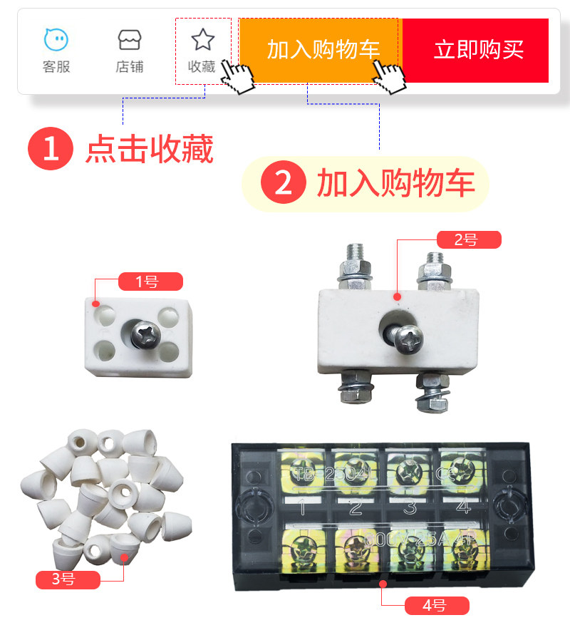 No. 1 extension cord, No. 2 terminal post, No. 3 insulating magnetic beads (20 pieces) No. 4 terminal block, No. 5 terminal block