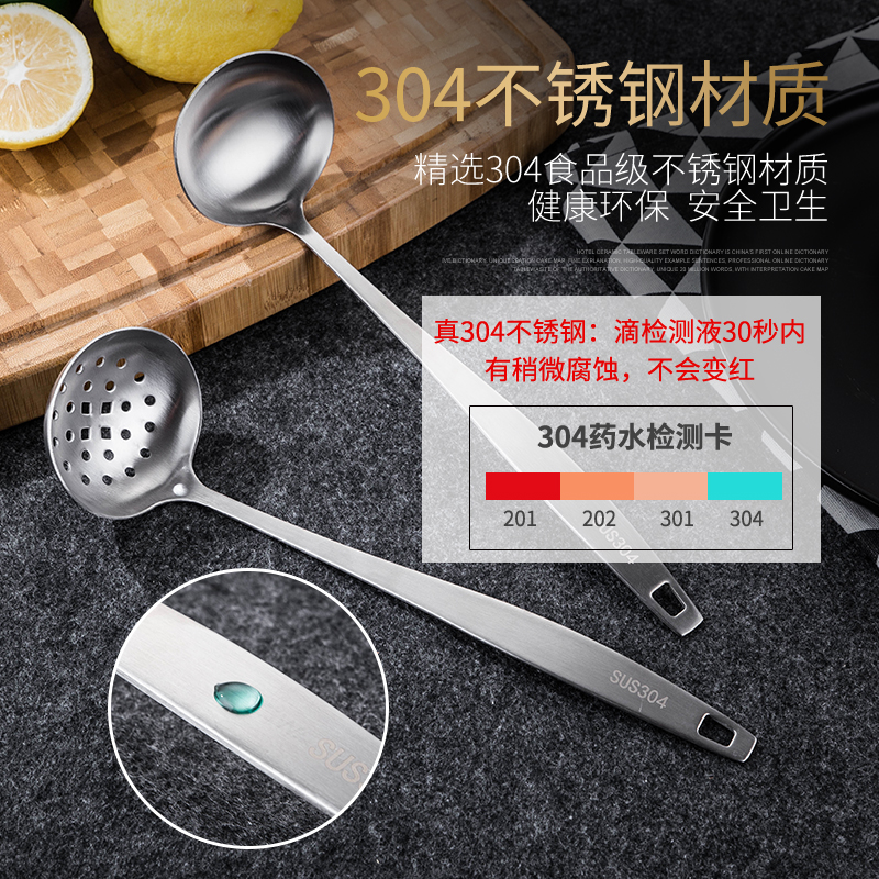 304 Hot Pot Spoon Stainless Steel Soup Spoon Leaking Spoon Suit Thickened Long Handle Spoon Leaking Spoon Domestic Porridge Spoon Size-Taobao