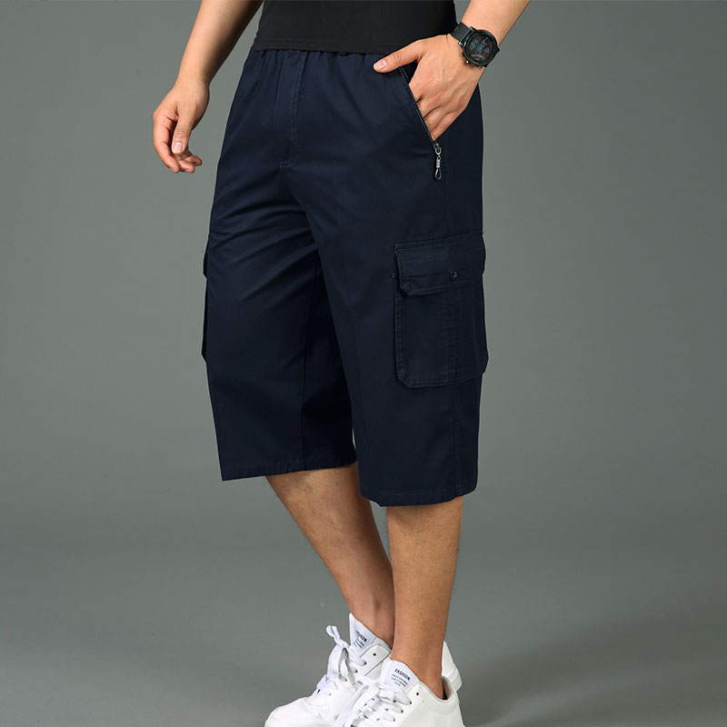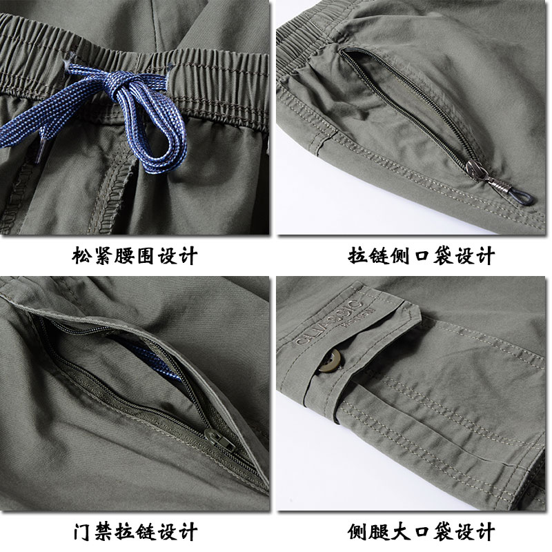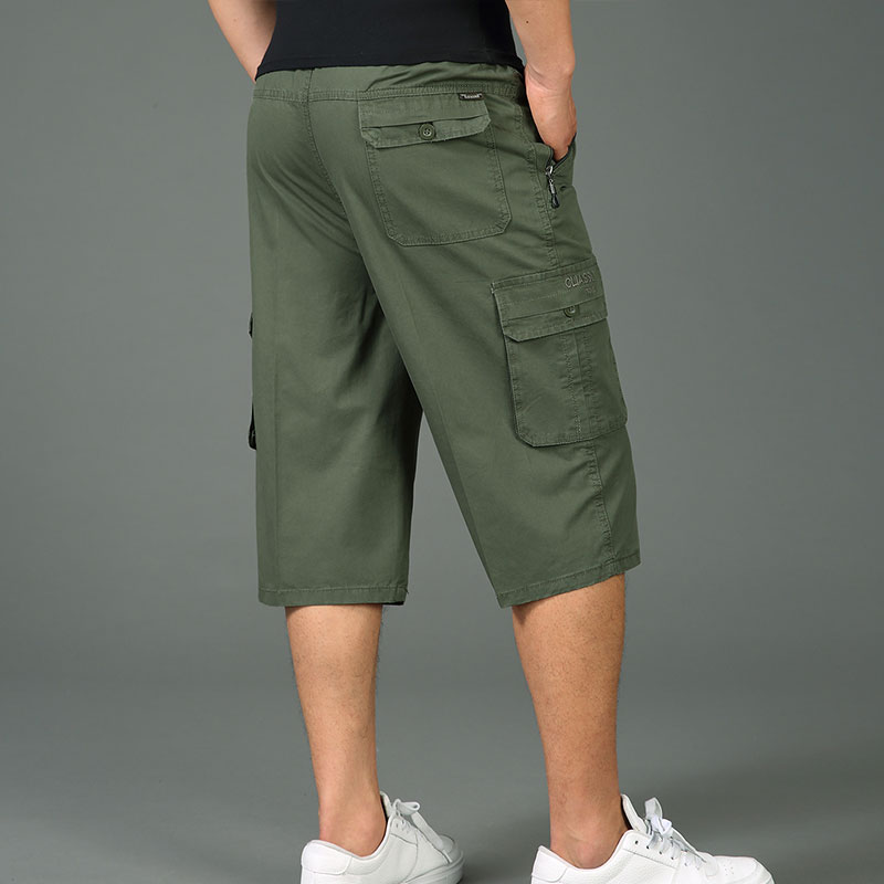 Summer Men's Seven Pants Mid Aged Pure Cotton Large Size Size Beach Pants Dad Casual Shorts Tightness Waist 50% Pants External Wear