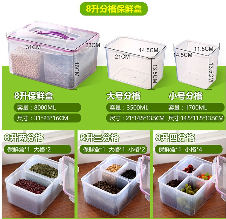 Large two-three-four-part fresh-keeping box mobile double-layer plastic miscellaneous grains dry food food side dishes classification portable 8 liters