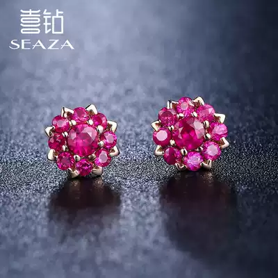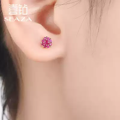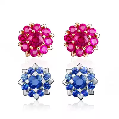 Xi Diamond 18K rose gold group inlaid ruby fashion ear needle ladies color gemstone sapphire jewelry ear jewelry ear jewelry