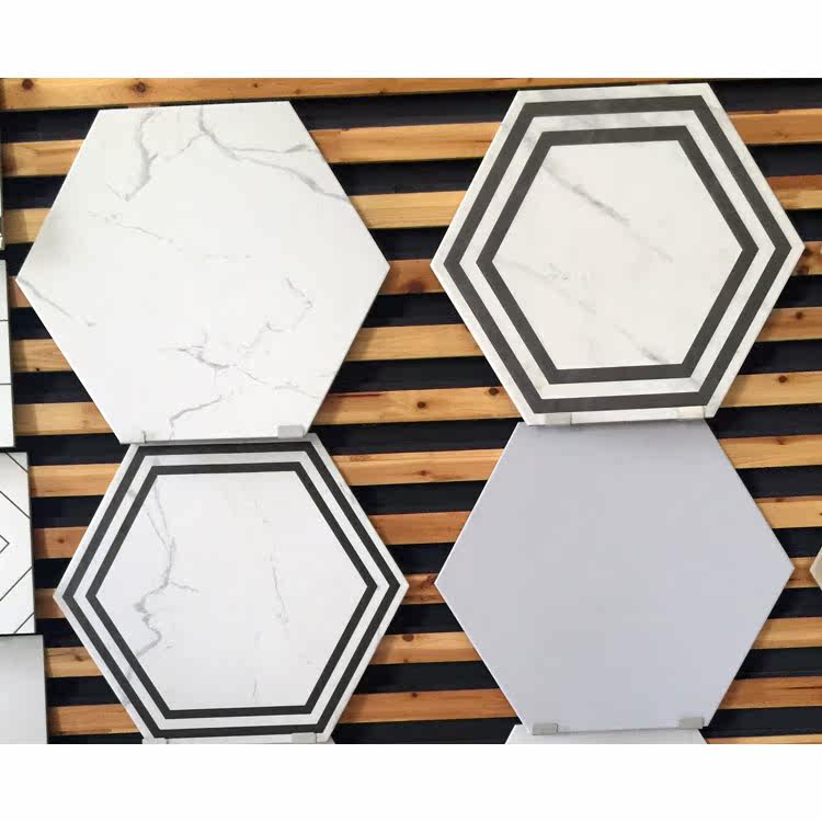 Large hexagonal brick Nordic retro powder room kitchen interior jazz white cement gray black and white floor tiles hexagonal tiles