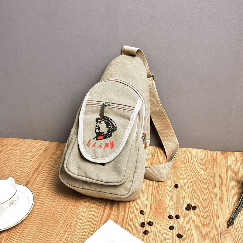 New trendy personality chest bag male creative chairman bag to serve the people canvas bag chest bag retro small messenger bag