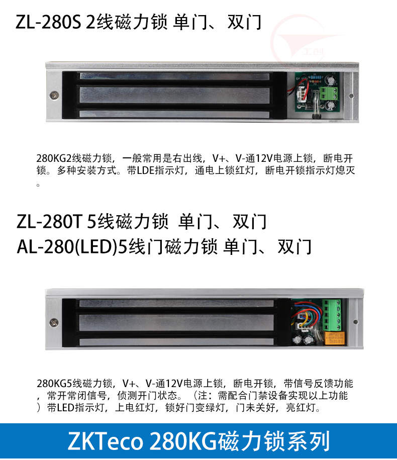 AL-280 (LED) single door five-line magnetic lock AL-280D (LED) five-wire double door magnetic lock ZL-280S single door second-line magnetic lock ZL-280