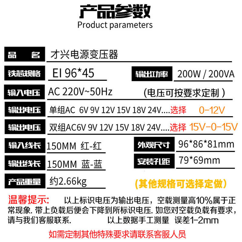 200W full copper EI AC power transformer 220V transformer 12v15v18v24v single dual voltage amplifier