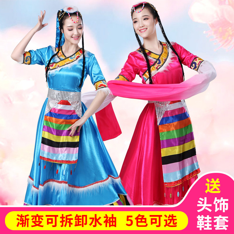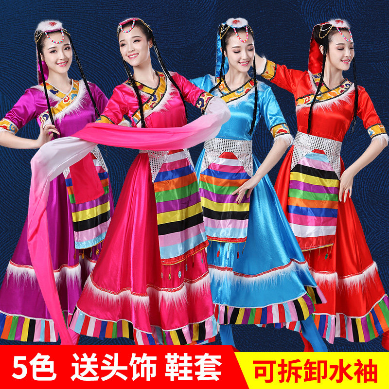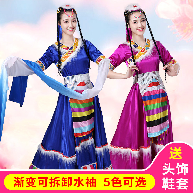Tibetan dance performance clothing women's Tibetan clothes ethnic minority long skirt water sleeve ethnic style costumes large swing skirt