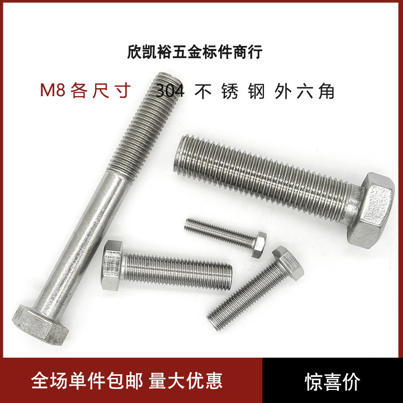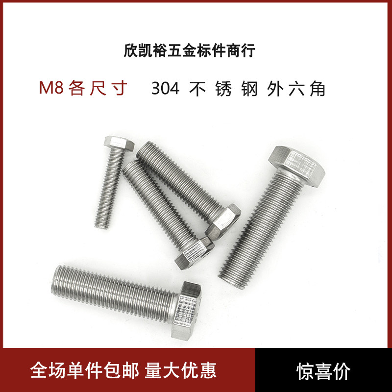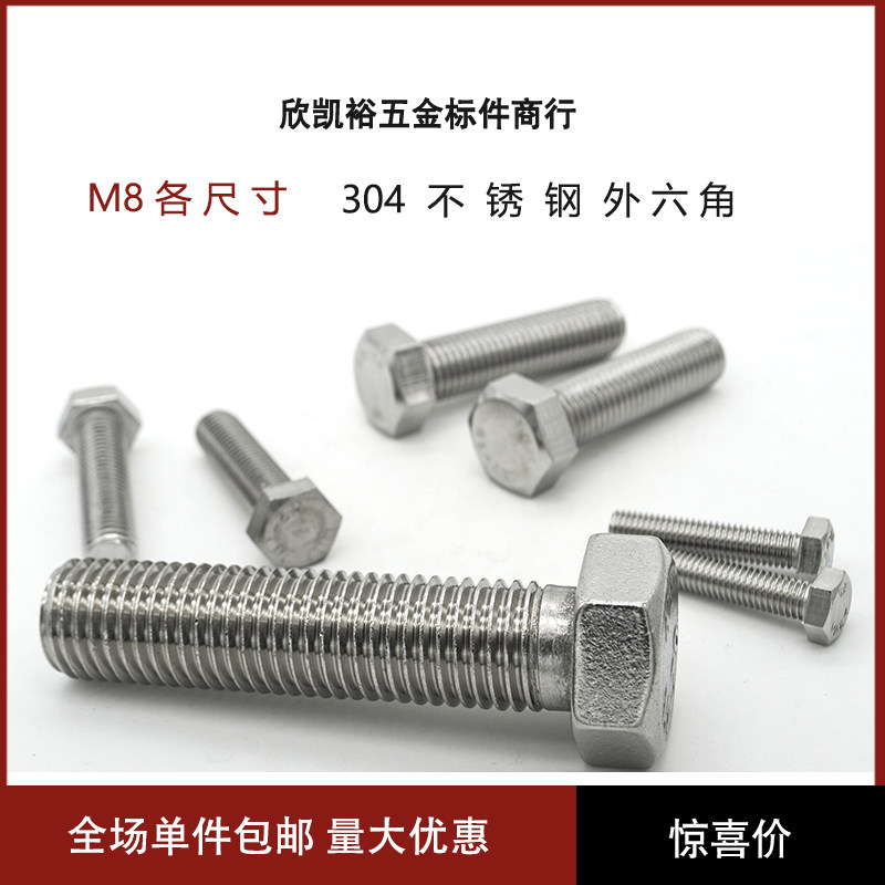 304 stainless steel outside hexagonal screws outside hexagonal bolts outside hexagonal screws square head screws M8 series
