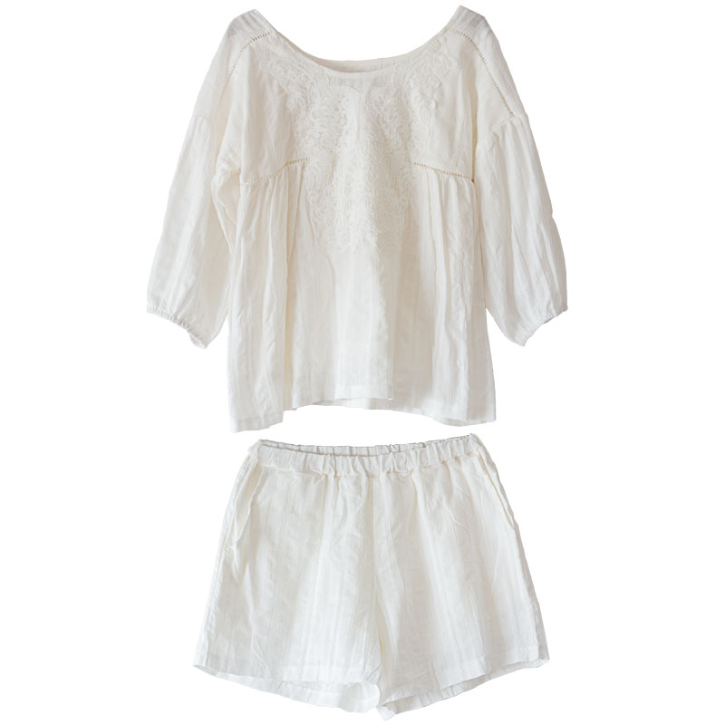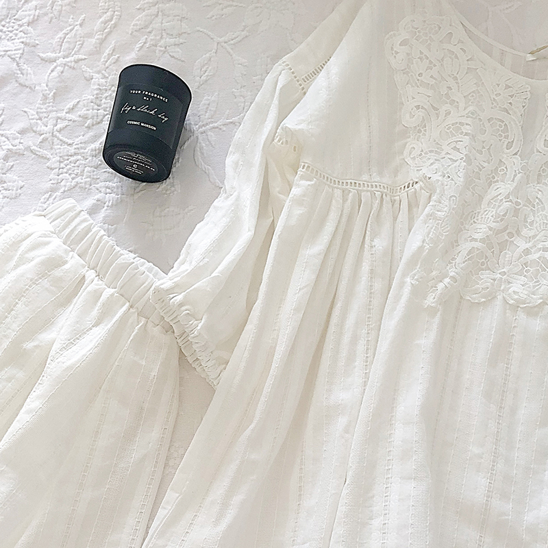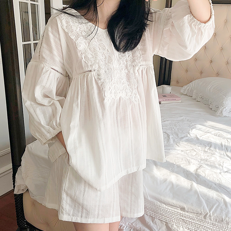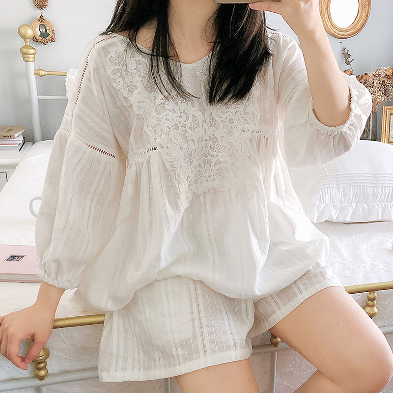 White Pyjamas Woman Summer Short Sleeve Spring Autumn Two Sets Loose Pure Cotton Hollowed-out Round Collar Comfort Home Clothing Exportable