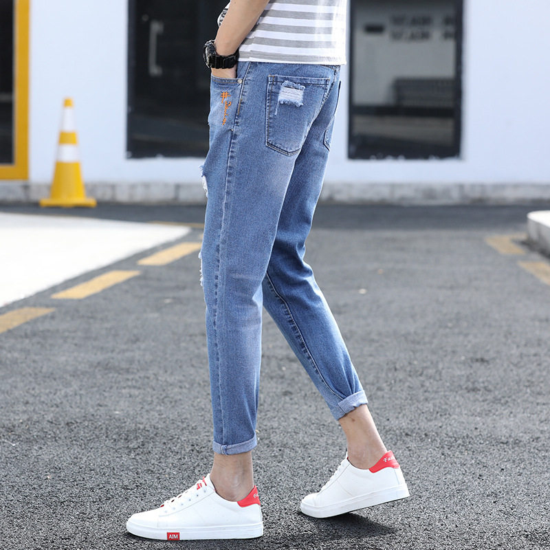 2022 Summer slim fit for men Tide Cards Breaking 90% jeans Men's Korean version Trend with minor feet 9 Sub-pants