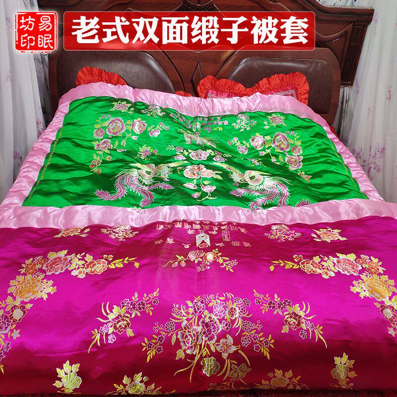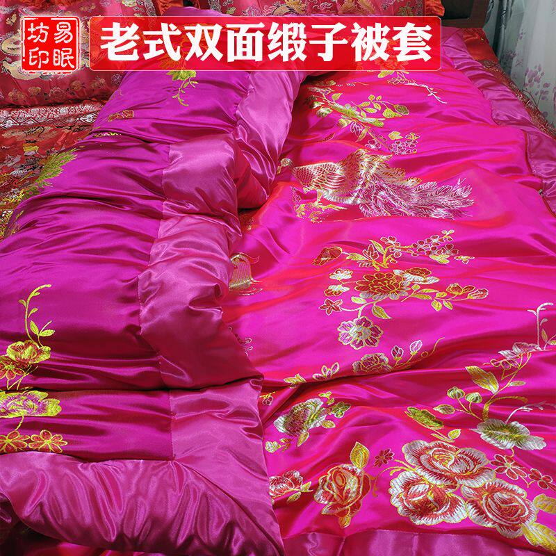 The old two-sided silk satin quilts silk satin quilts to be married accompanied by a large red dragon phoenix Chinese Ming and Qing classical soft satin