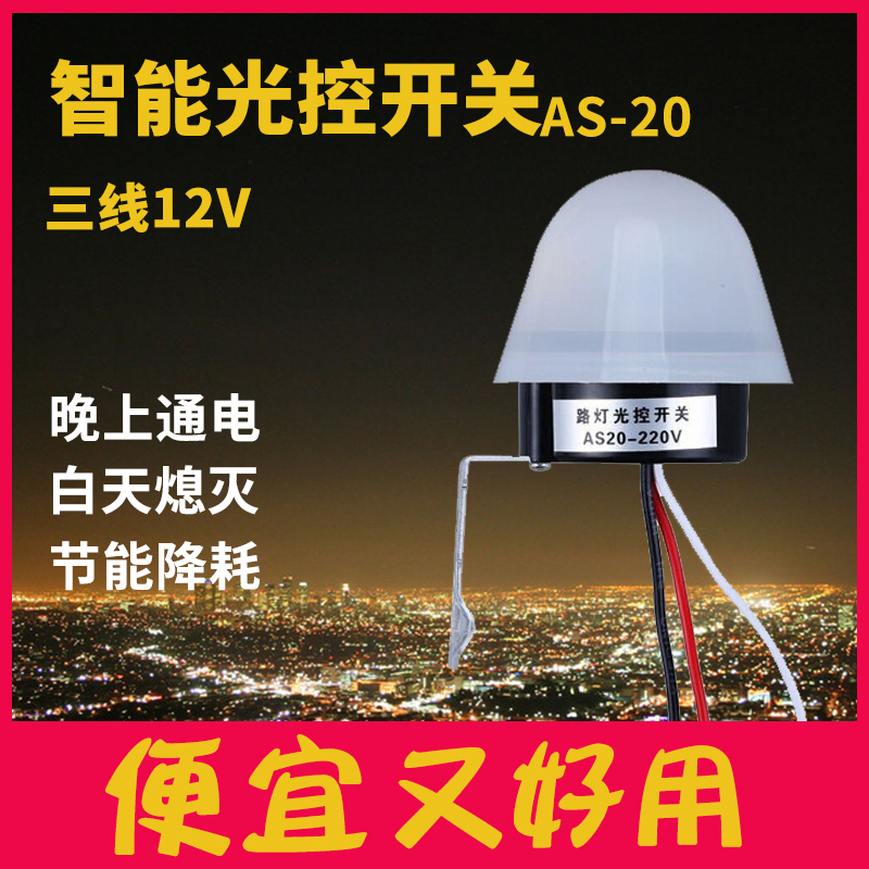 DC 12V street light control switch AS-20 intelligent rainproof light sensor automatic delay light control sensor controller