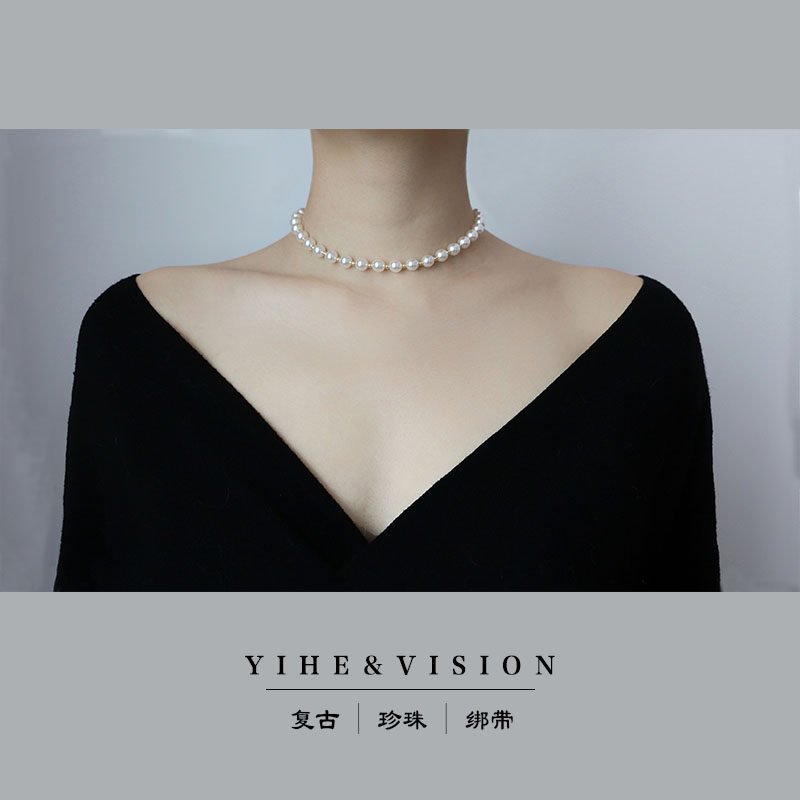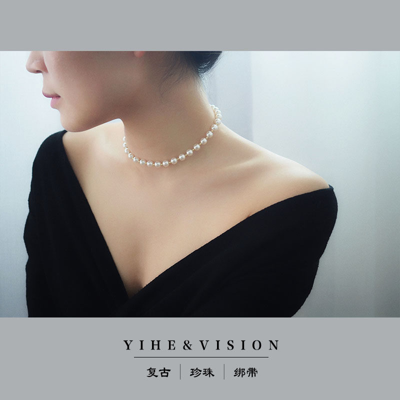 YIHE original design (Hepburn pearl) super elegant vintage velvet strap neckband choker