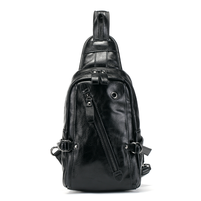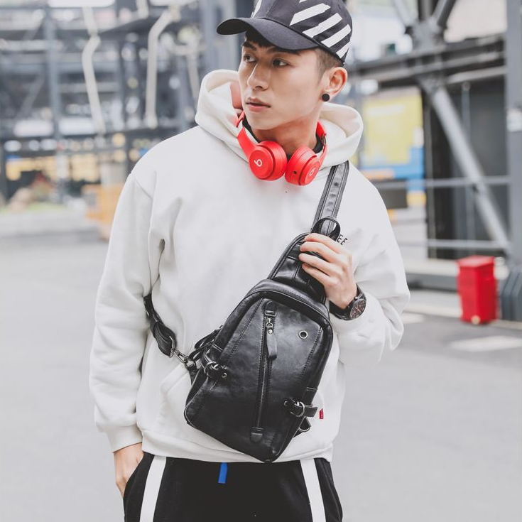 Hong Kong's new men's genuine leather chest bag youth fashion Chains 100 hitch casual scapegoat Korean version single shoulder slanted satchel