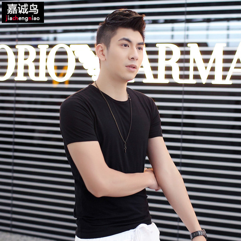 Short-sleeved men's T-shirt solid color round neck half-sleeved T-shirt red heavy summer dress simple bottoming shirt green clothes boys