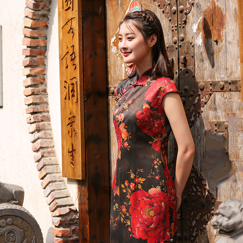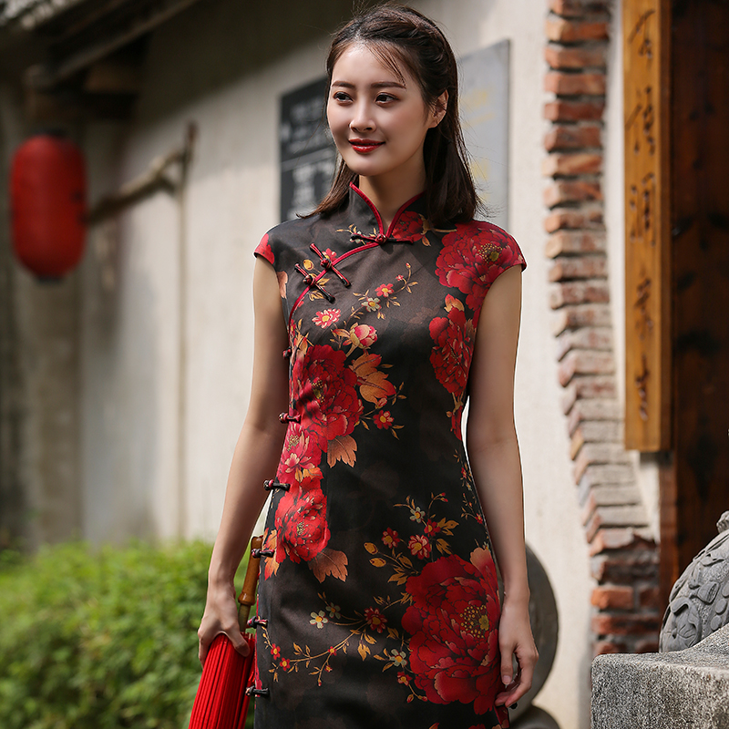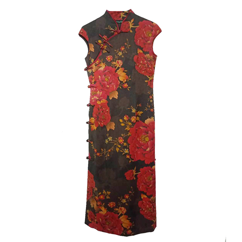 Autumn water ballad original (Juan Juan under the moon)Summer heavy satin silk fragrant cloud yarn sleeveless long version of Cheongsam young fashion