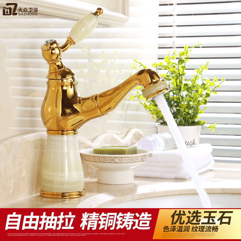 European-style telescopic tap cold and hot wash basin pull-up household toilet all-copper faucet gold jade faucet