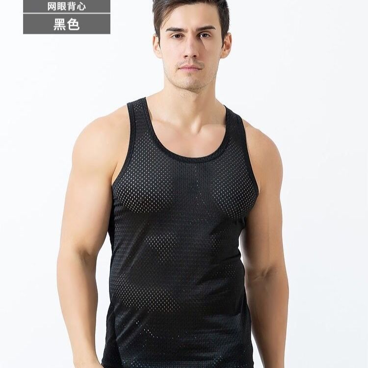 Ice silk vest men's summer thin section outerwear fitness narrow shoulder mesh sports vest loose quick-drying sleeveless t-shirt