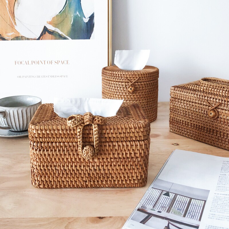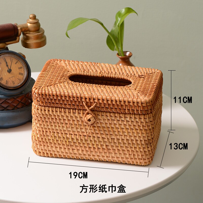 Vine woven multi-use tissue box Living room Creative pastoral towel box Home car minimal drawing box
