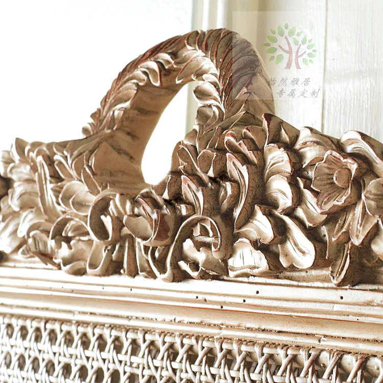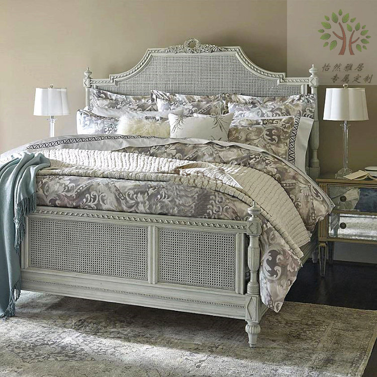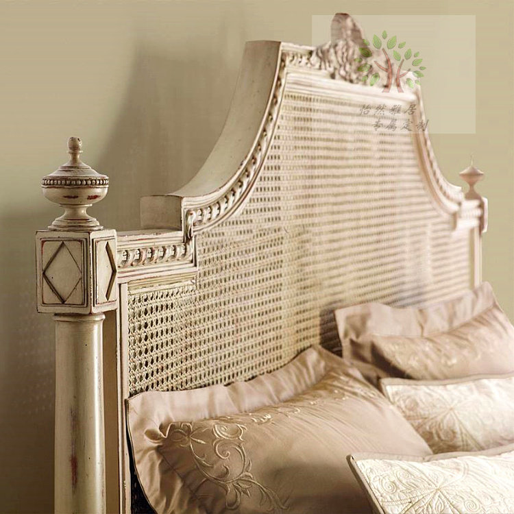 American antique wood diao hua chuang French European oak old bedroom teng yi chuang 1 8 meters double liang chuang