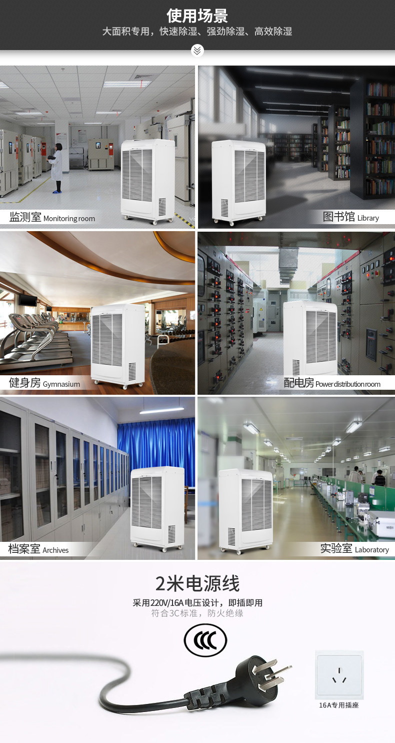 Deye industrial dehumidifier DY-6138EB food workshop basement library computer room high power dehumidifier