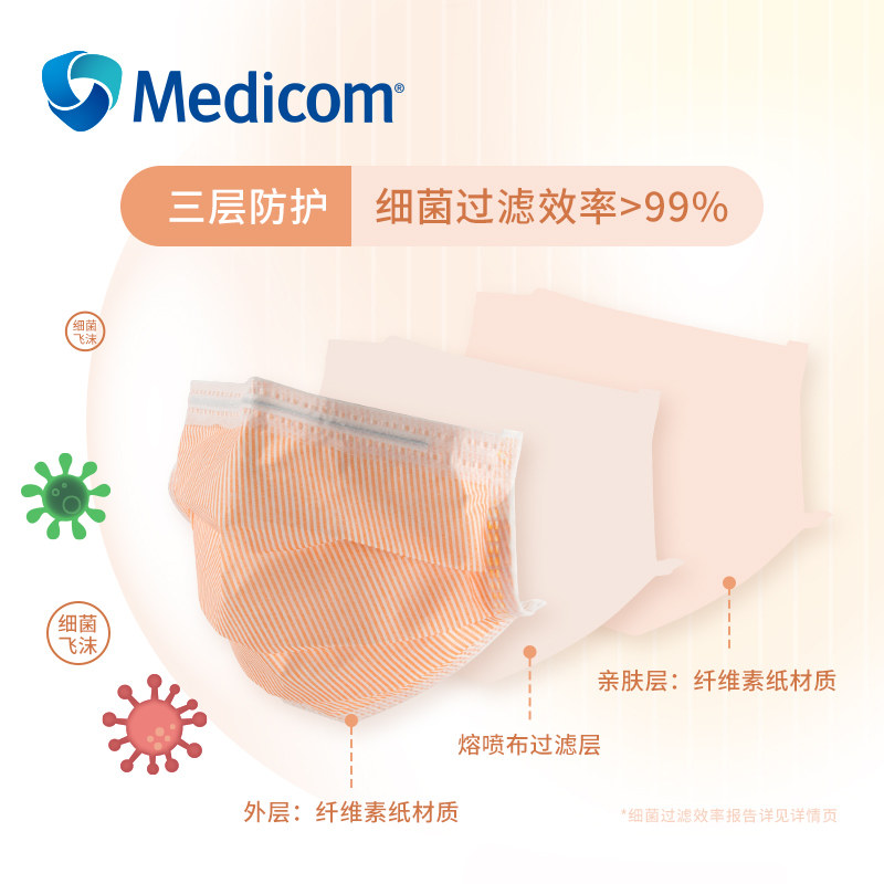 Medicom Medicom disposable protective mask Japanese import wide ear with small orange mask triple protective