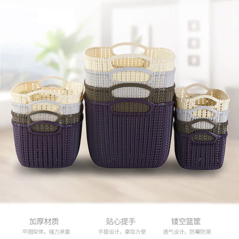 Imitation rattan hollow storage basket plastic desktop storage basket kitchen snack storage box toy storage basket