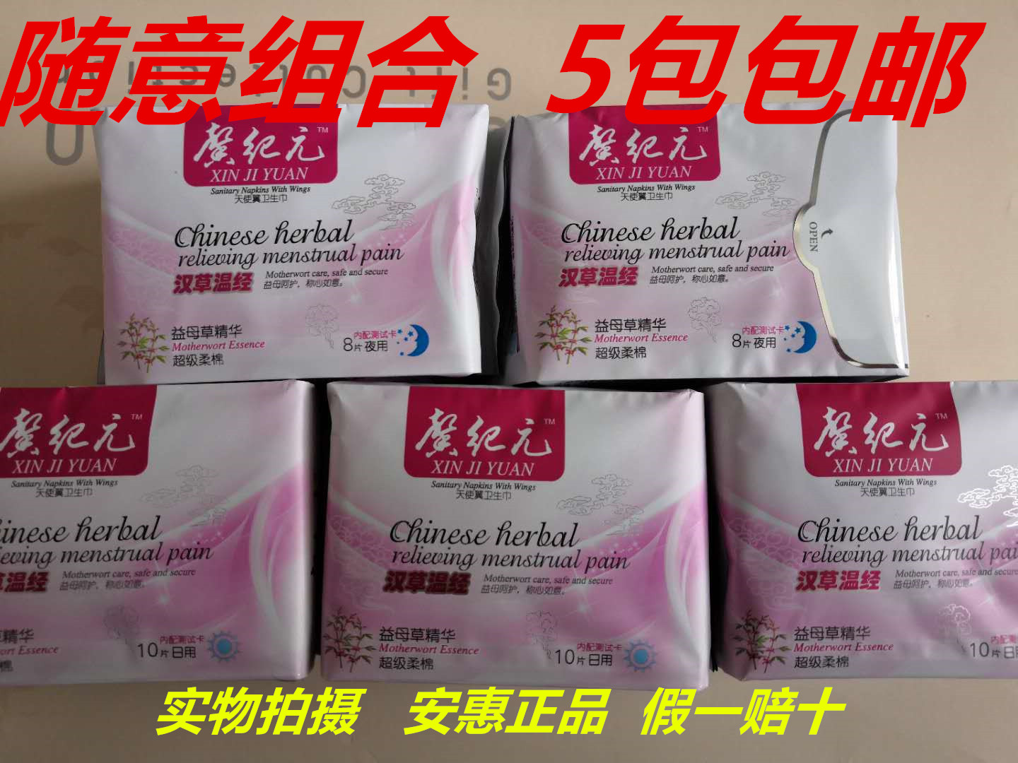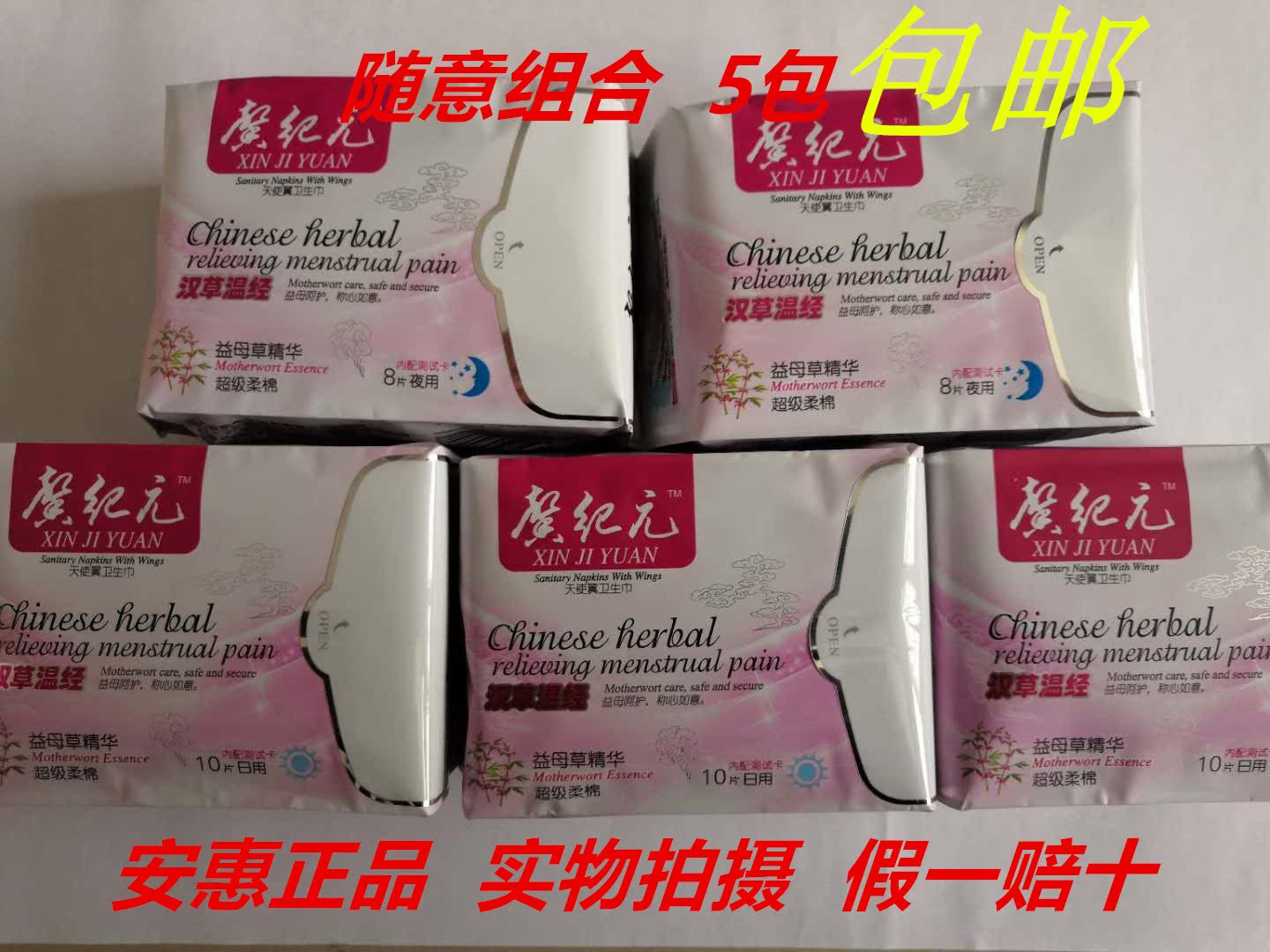 Anhui sanitary cotton Xin era super cotton soft angel wings daily night free match 5 packs