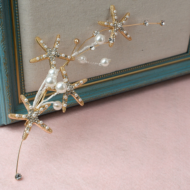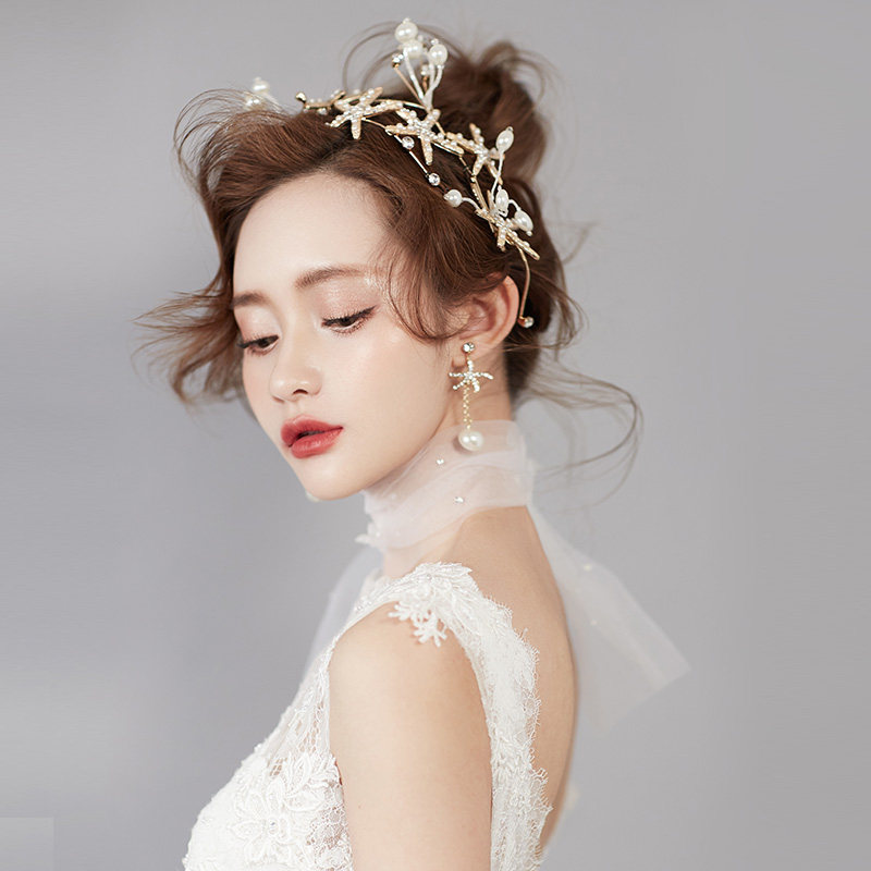 2022 new white yarn bridal side headgear Stars Hair Stirrup Crown Side Clip Ultra Fairy Korean Style Wedding Ornaments