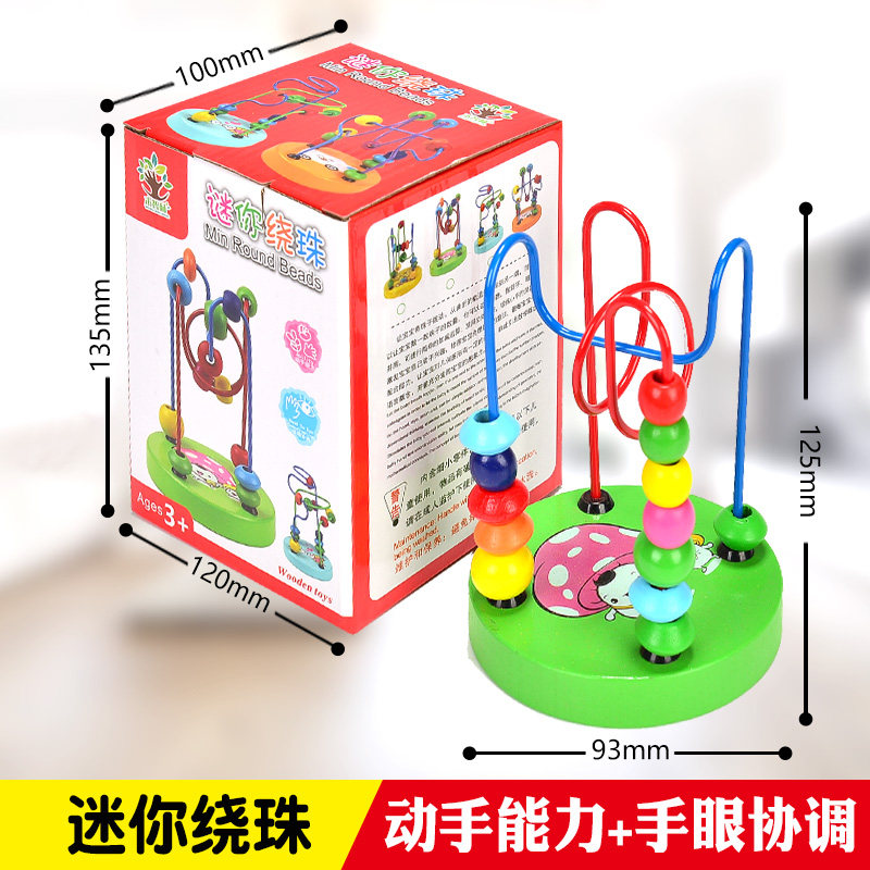 Mini-wrap-pearl-bright yellow mini-winding bead-grass green mini-wrap around bead-orange beech wood base (large number) - animal beech wood base (large number) - beech wood base (