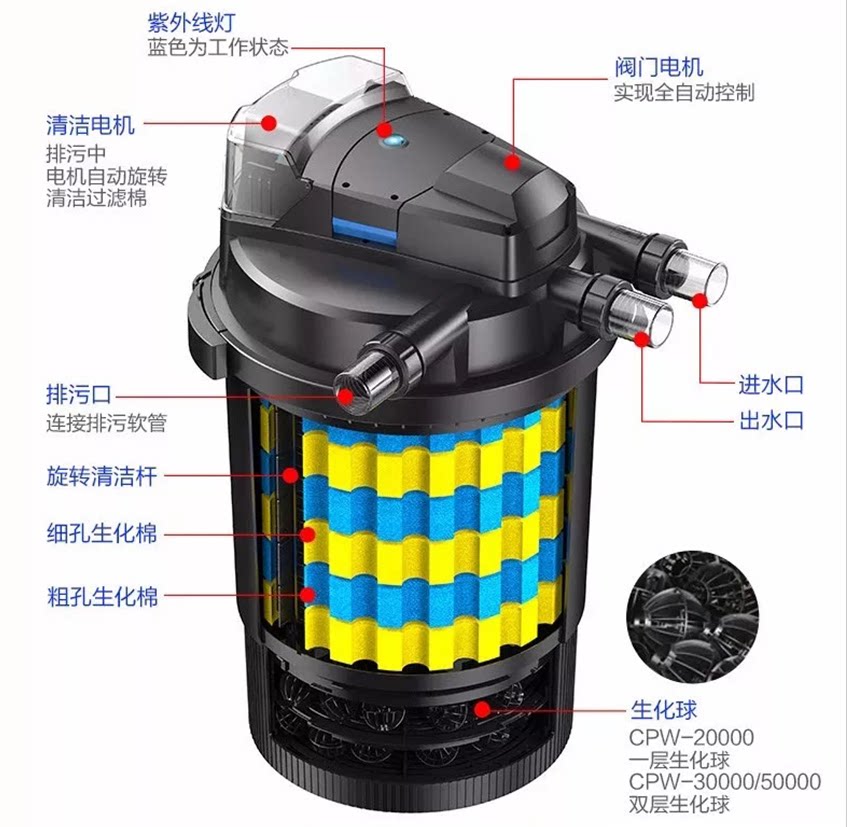 Sensen WIFI fish pool filter large fish tank filter barrel gin carp pool purifier pool equipment filtration system