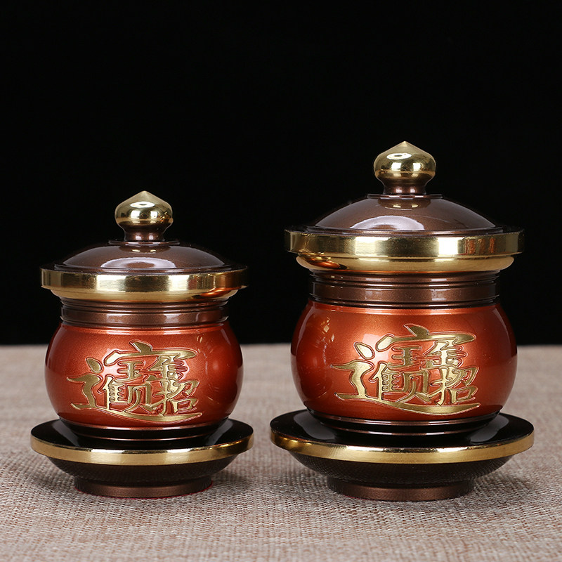 Buddhist temple holy water cup to attract wealth into treasure God of wealth copper water cup Guanyin for the cup Buddha word lotus water purification cup for the Buddha's front cup