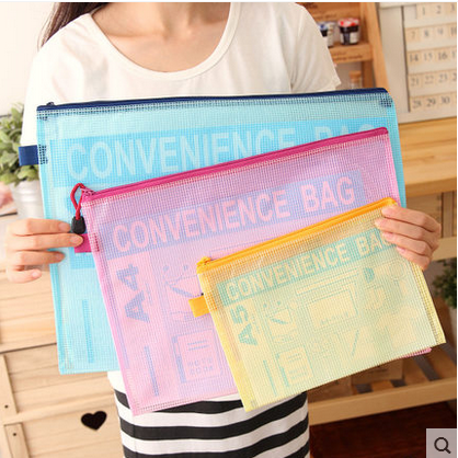 A3B4A4 Waterproof thick mesh zipper notes Office documents data storage bag Student exam bag
