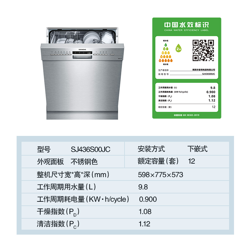 SIEMENS SIEMENS embedded fully automatic household dishwasher self-cleaning 13 sets of SJ436S00JC