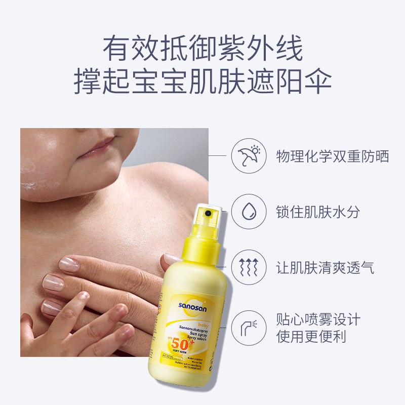 Sanosan children's sunscreen baby sunscreen milk 150ml baby face waterproof sunscreen spray 2665