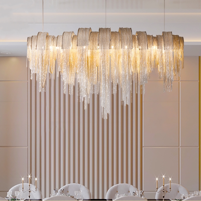 Rear Modern Dining Table Rectangular Dining Room Chandelia Hotel Front Desk Bar Art Design Flow Sualuminum Chain Waterfall Chandelia