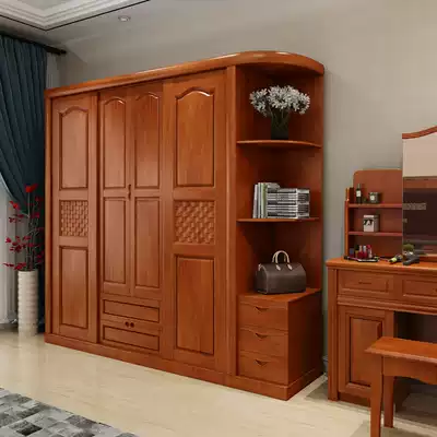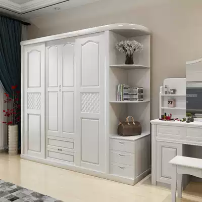 Push-pull four-door wardrobe (walnut color) push-pull four-door wardrobe (Begonia color) push-pull four-door wardrobe (beech wood color) push-pull four-door wardrobe (ivory white) solid wood wardrobe left corner cabinet (color remarks) solid wood