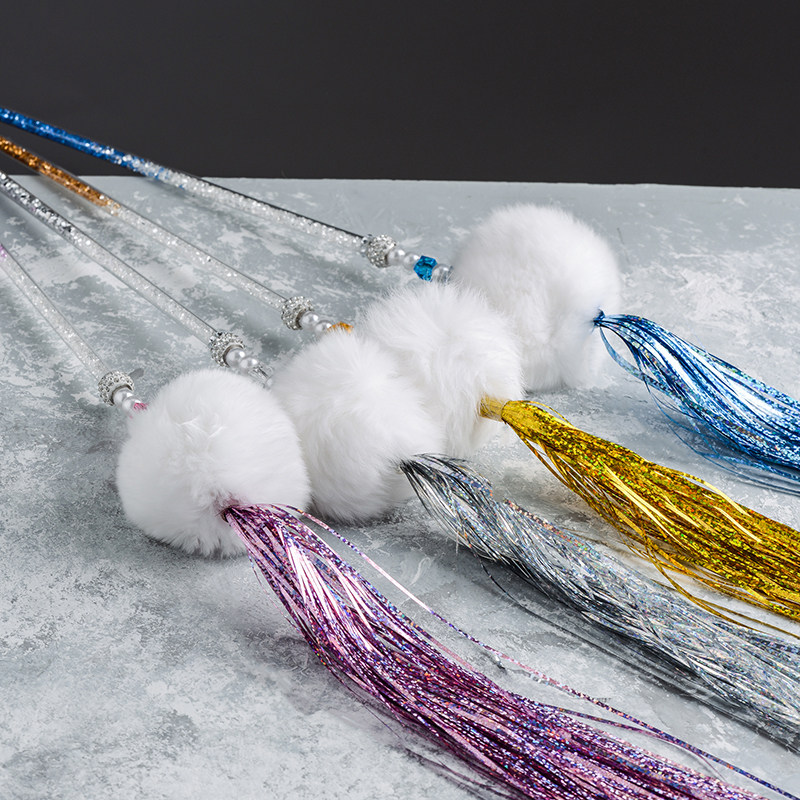 Handmade Cat Teaser Stick Rabbit Fur Ball Laser Wire Cat Toys Pet Toys Cat Teaser Toys