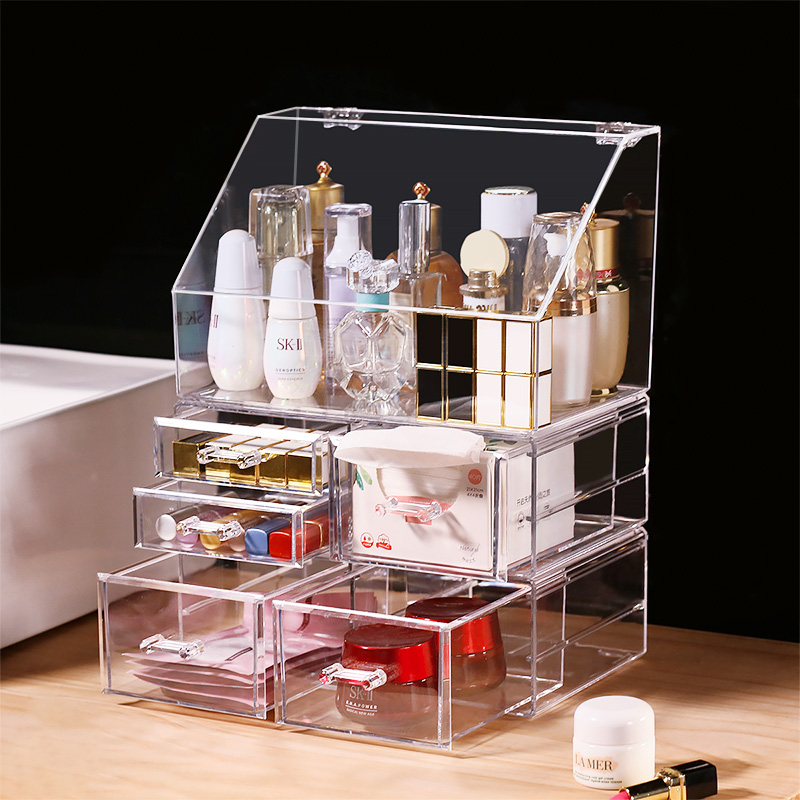 (new pint box section) Tick Clear Crystal X Can Put High Bottle Mask Drawer (Doog Design) * Coffee color partition can hand pro-people price -- transparent lifting cover * exempt from mounting upgrade cotton stick box