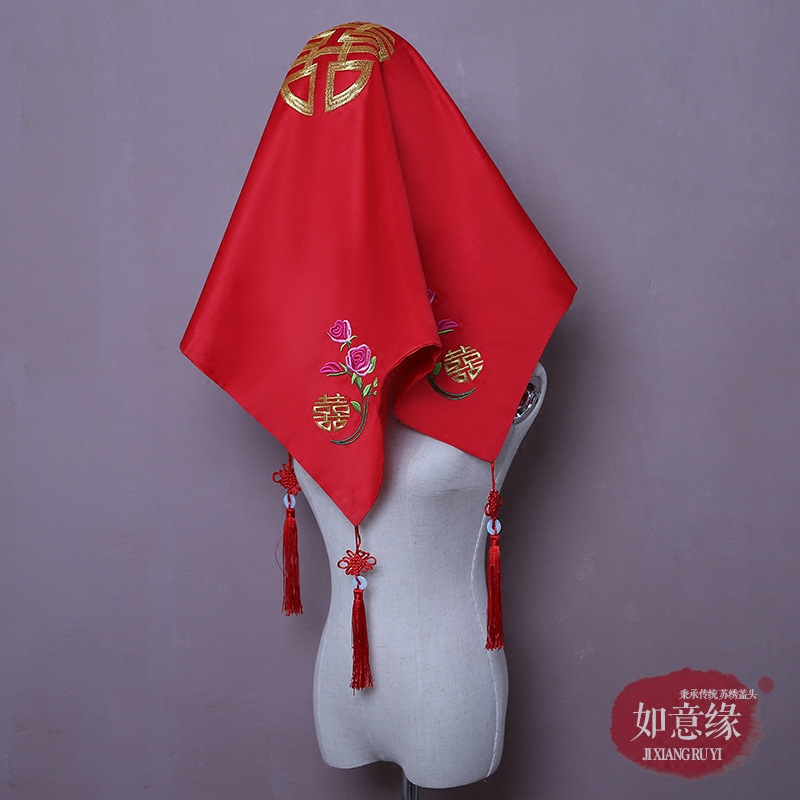 Bride red hijab 2018 new bride wedding red hijab classical embroidery Chinese Xiuhe dress hijab wedding