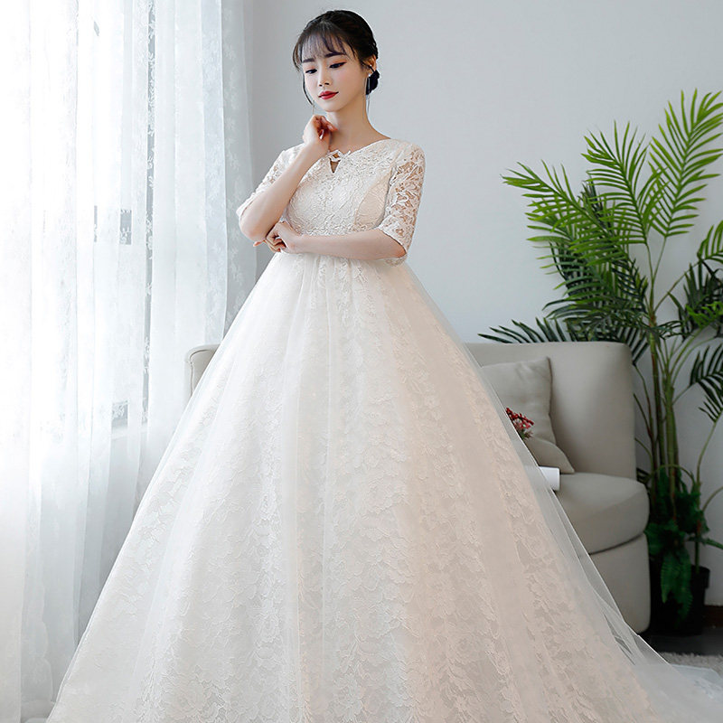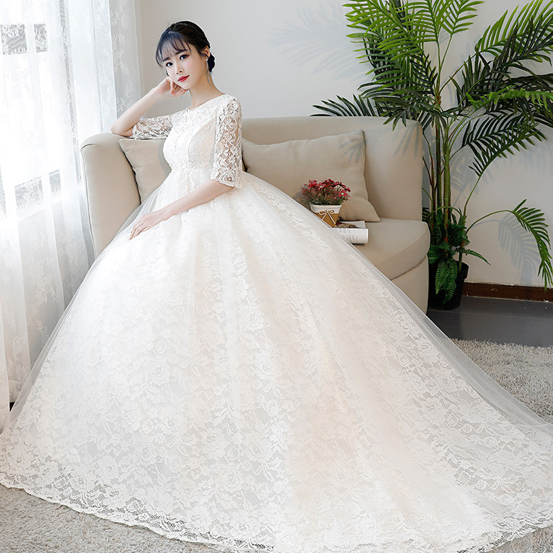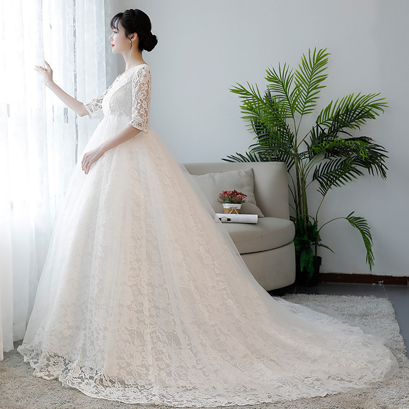 Pregnant woman wedding dress 2021 new brides with high waist surrogacy Han version V collar trailing big size and fat mm with big belly