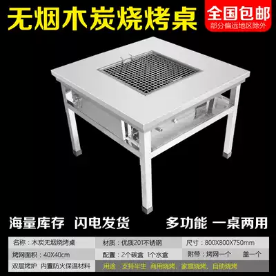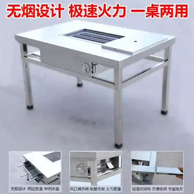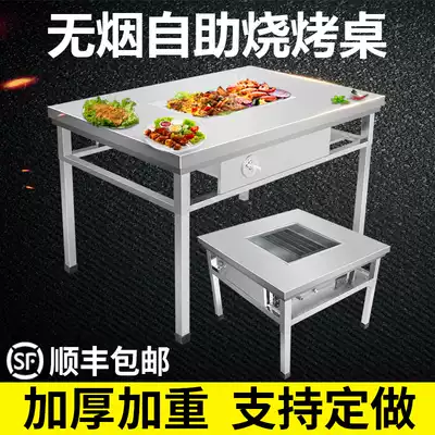 Smokeless barbecue table commercial self-service charcoal stove lamb leg rack box home barbecue padded stainless steel outdoor shop