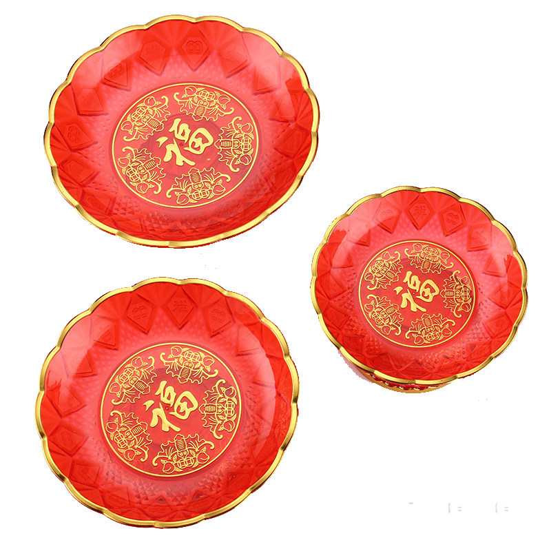 6 " -8 " plastic serving plate Crystal serving plate Fu word fruit plate God of wealth fruit plate Tray supplies Buddha supplies